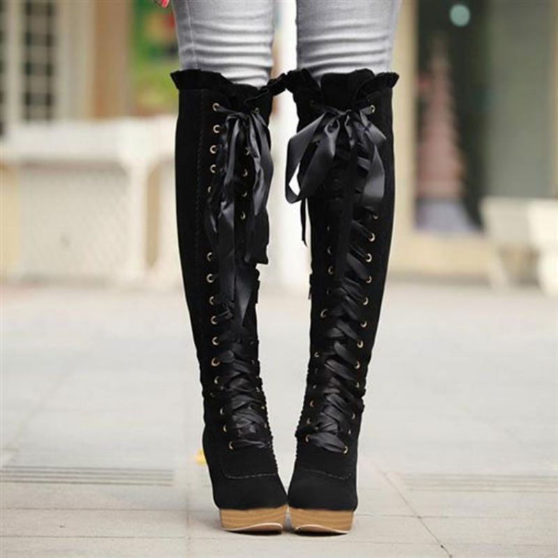 Eurooppalaiset Nauhalliset Mokkanahkaiset Knight-Polvisaappaat