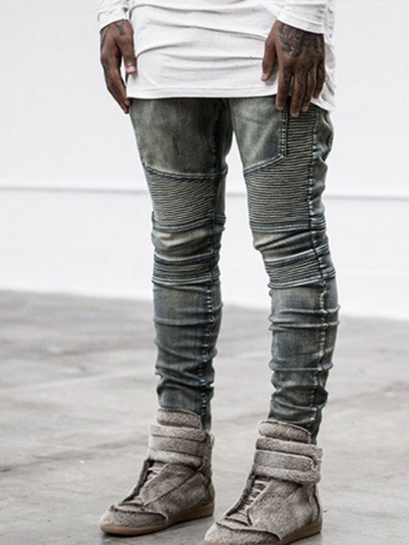 Kuluneet Raidallinen Vetoketju Keskivyötäröllä Miesten Farkkukynähousut