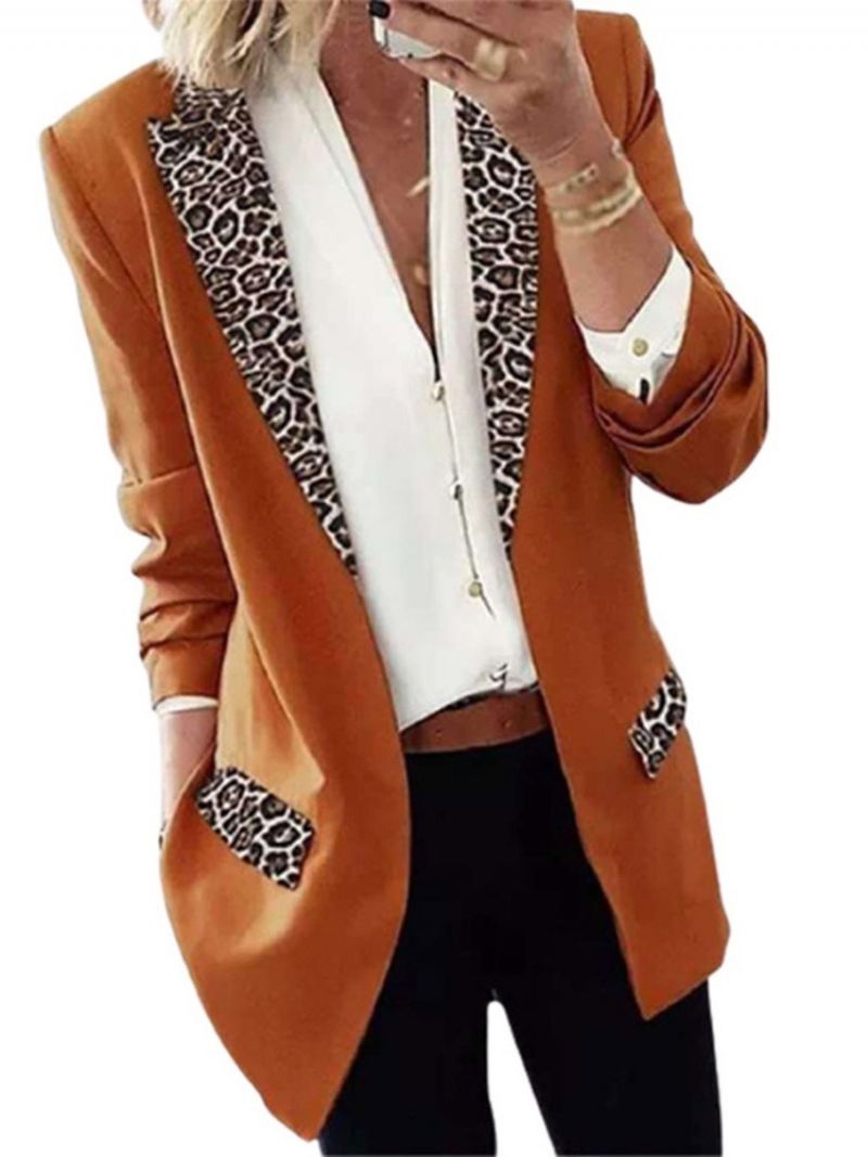 Lapel Leopard Kääreinen Syksyinen Keskipitkä Rento Naisten Bleiseri