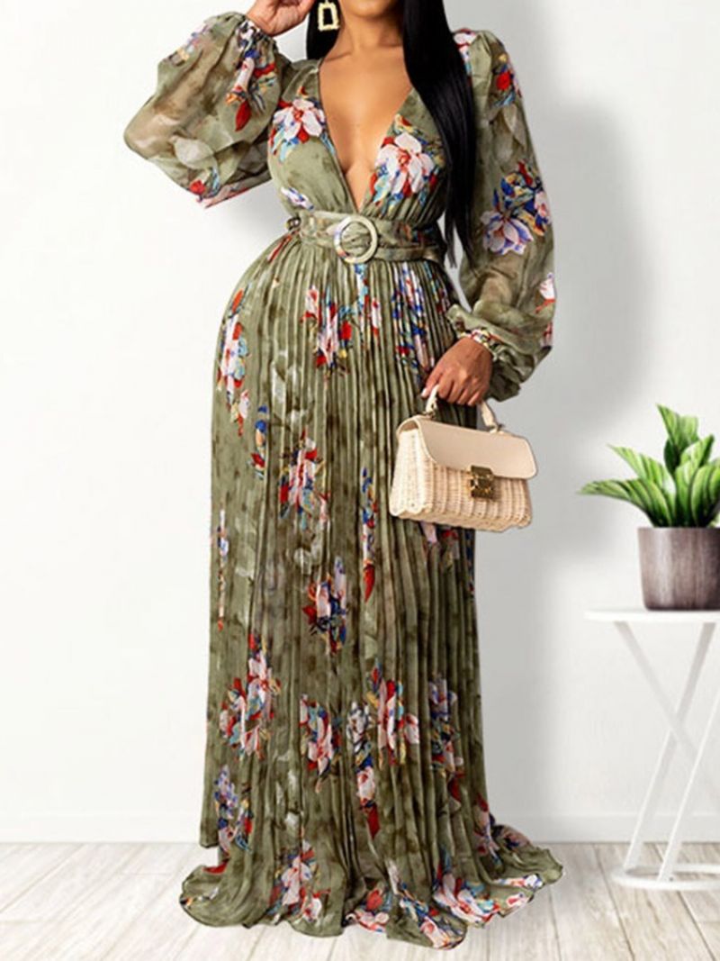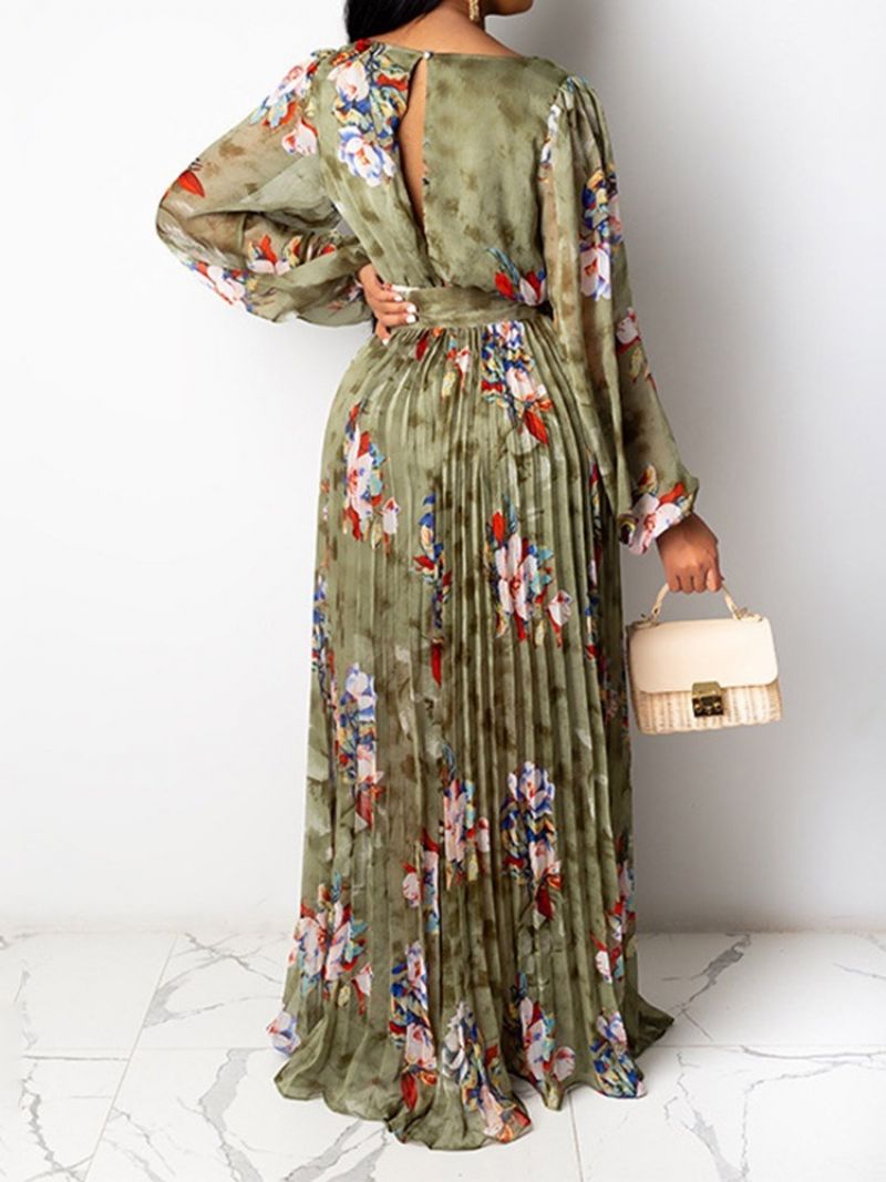 Lattiapituinen Printti V-Kaula-Aukoinen Neulepusero Kukkainen Maksimekko