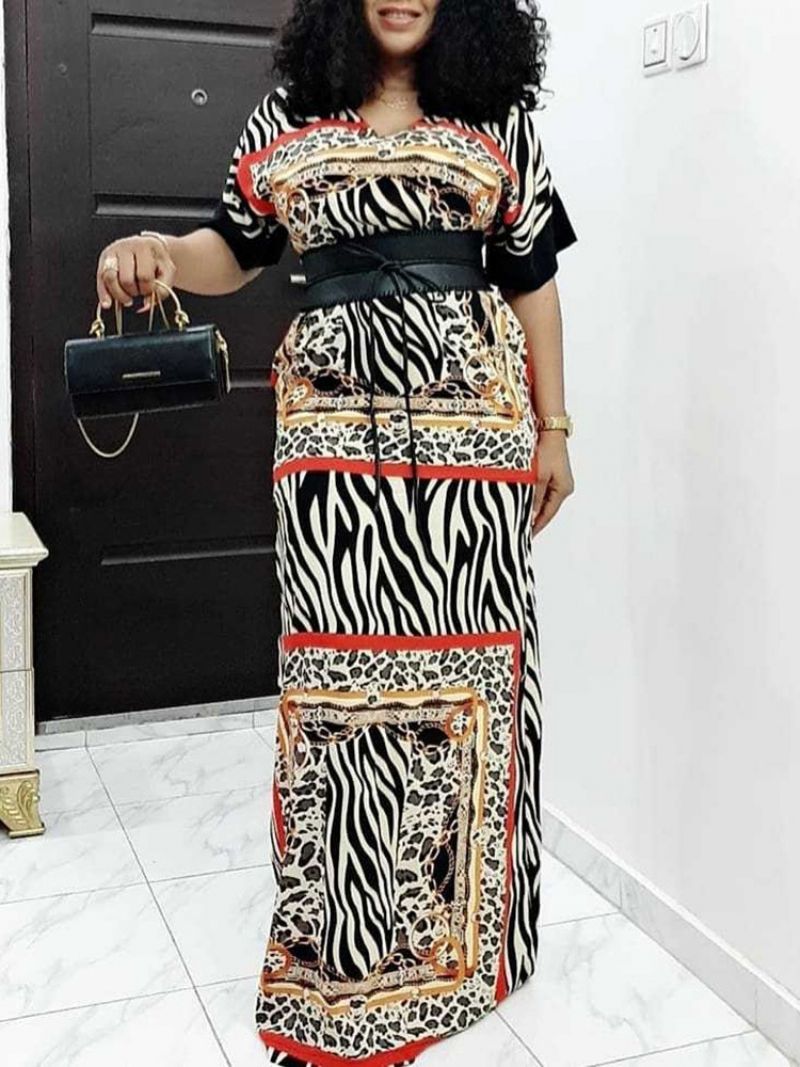 Lyhythihainen Printti Lattiapituinen Seepraraitainen A-Linjainen Mekko