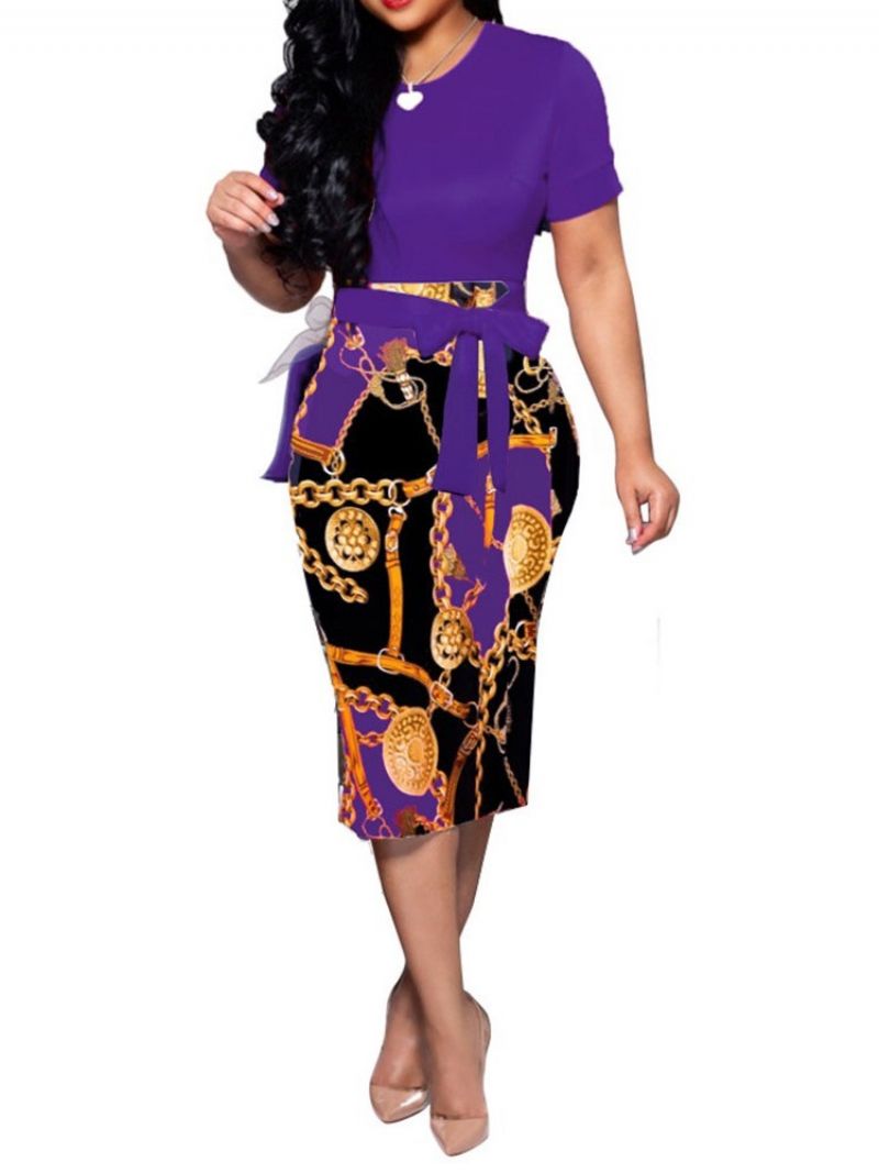 Lyhythihainen Pyöreä Pääntie Printti Keskivyötäröinen Kesämekko