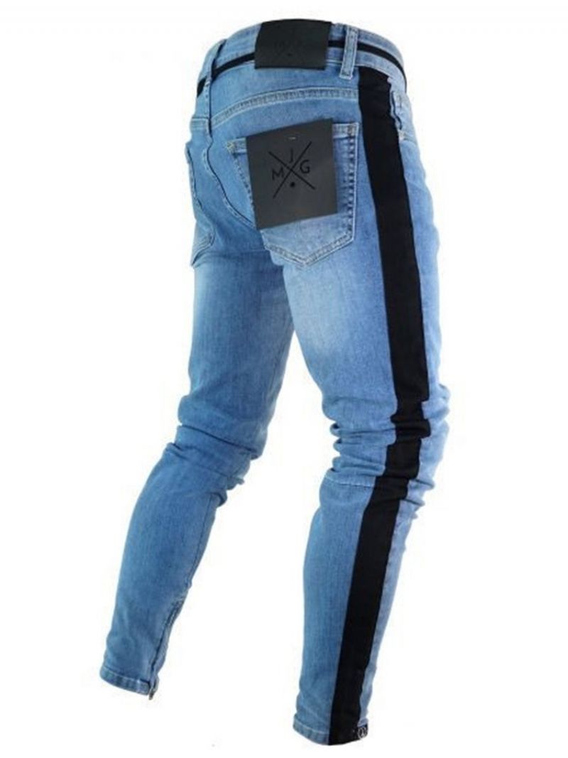 Lyijykynähousut Patchwork Color Block Vetoketju Keskivyötäröllä Miesten Farkut