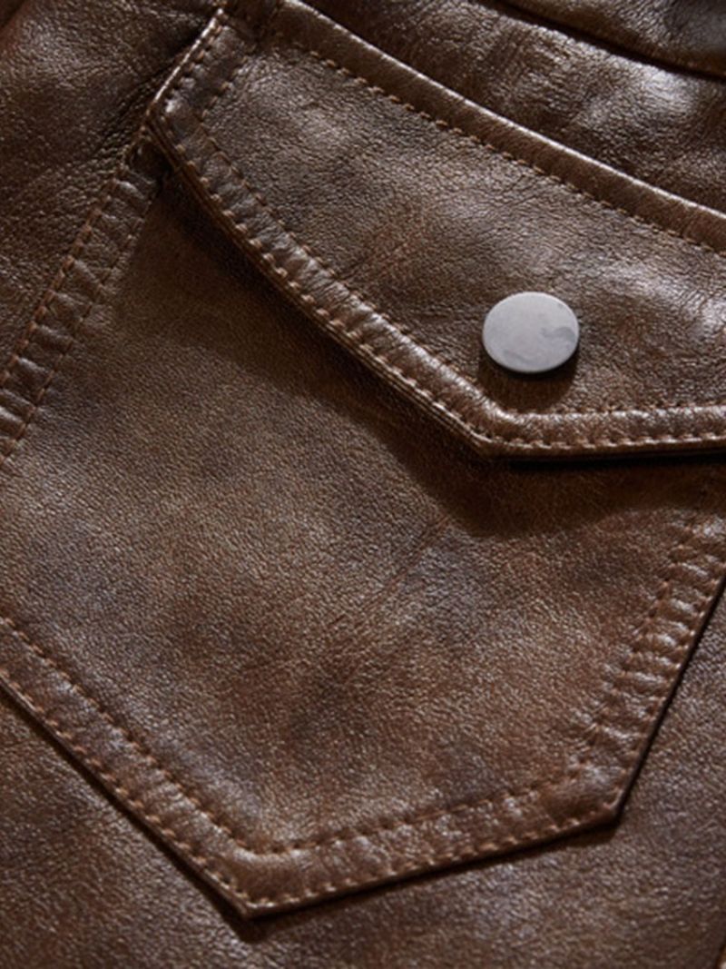 Normaali Kaksikerroksinen Vetoketjullinen Ohut Miesten Nahkatakki