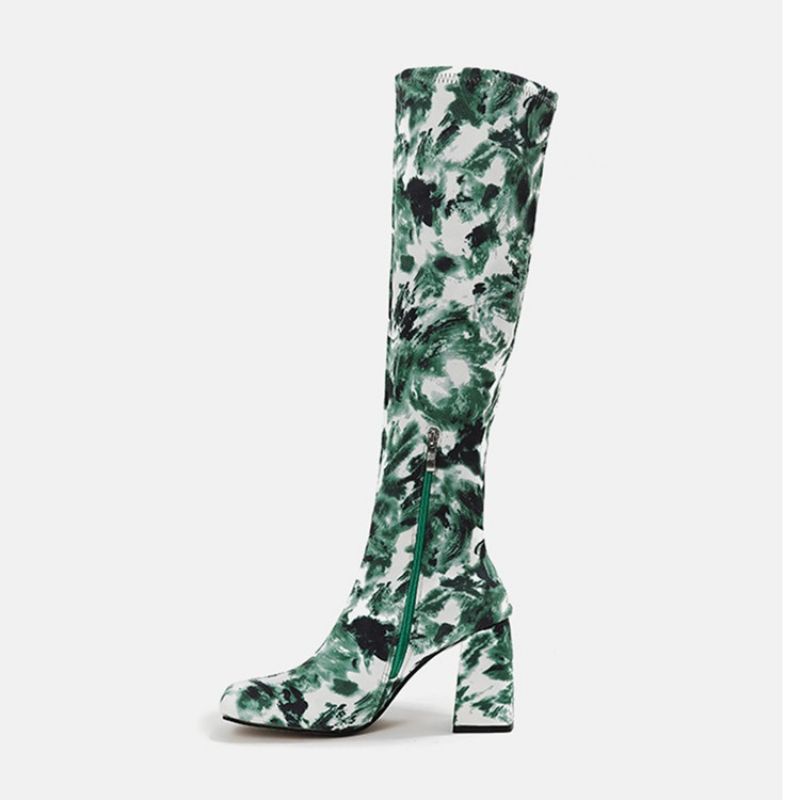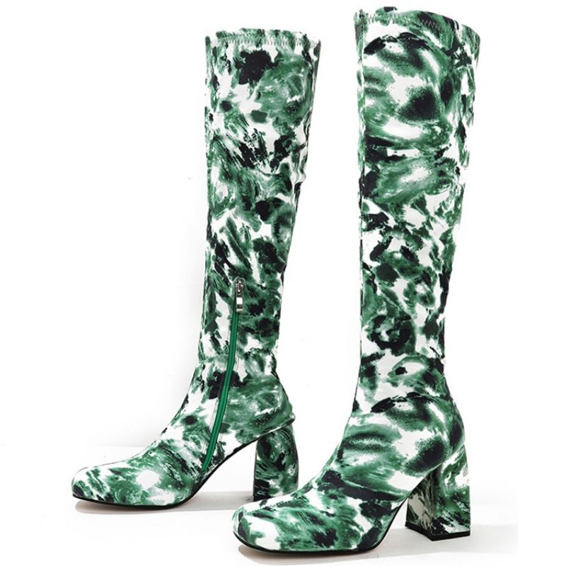 Paksut Heel Square Toe Naamiointi Western Saappaat