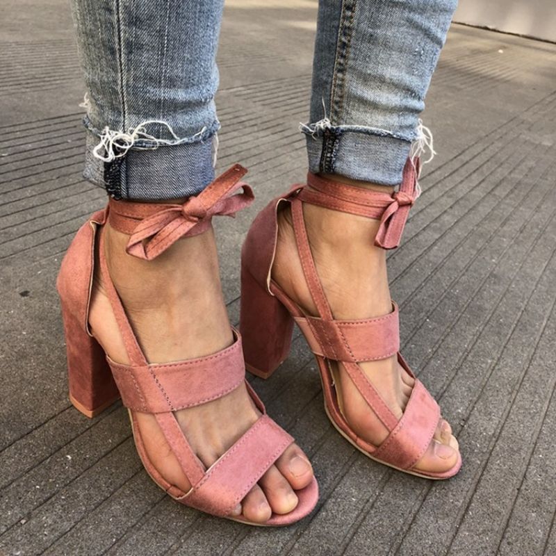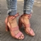 Peep Toe Chunky Heel Korkopäälliset Naisten Tavalliset Sandaalit