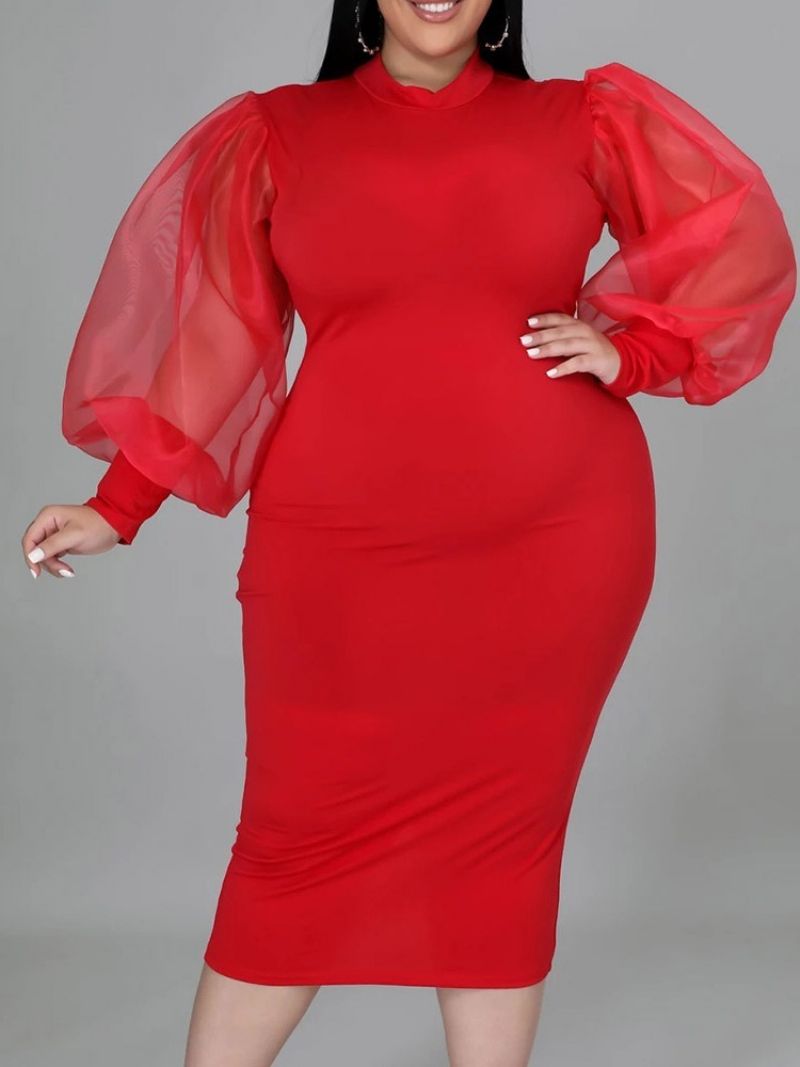 Pitkähihainen Mesh-Mekko Jossa On Korkea Vyötärö Ja Pohkeet