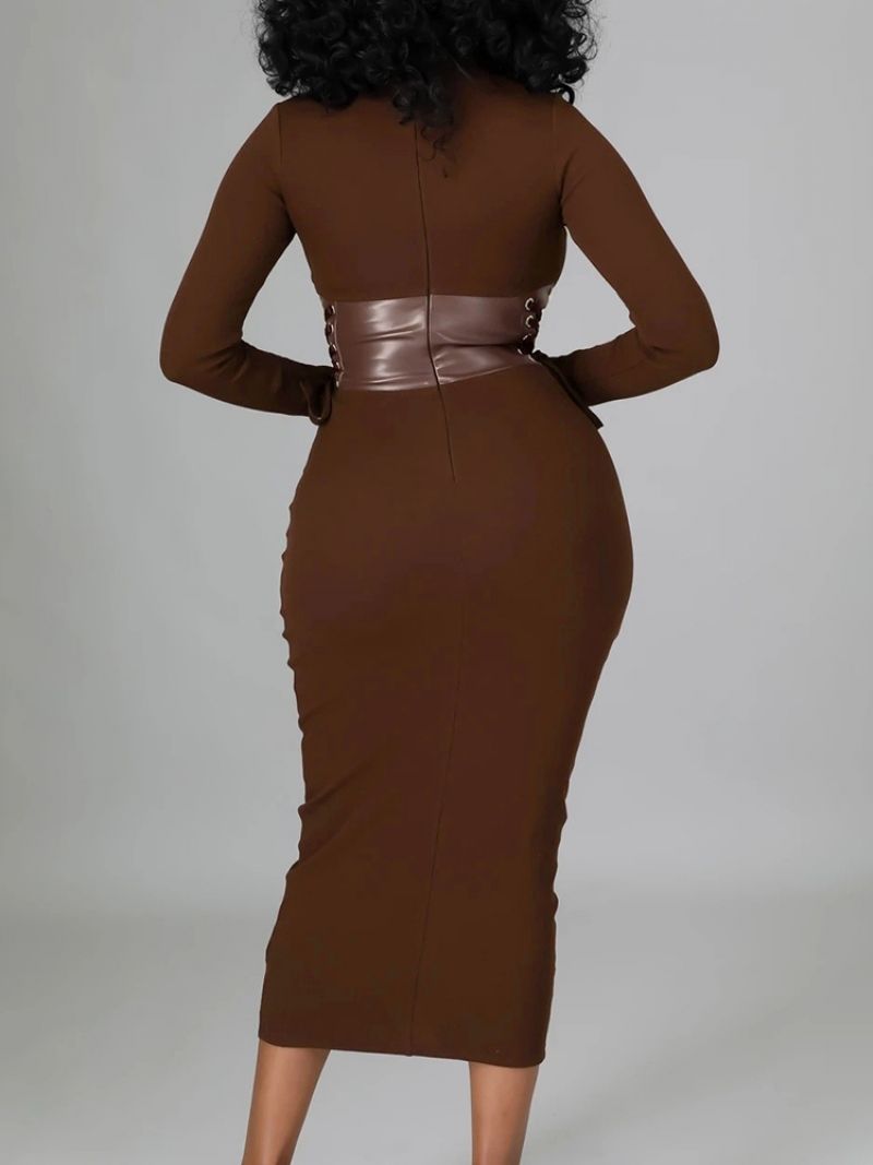 Pitkähihainen Pohkeen Puoliväliin Ulottuva Bodycon Tavallinen Mekko