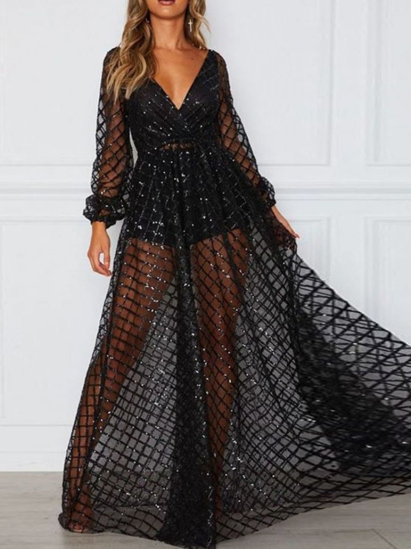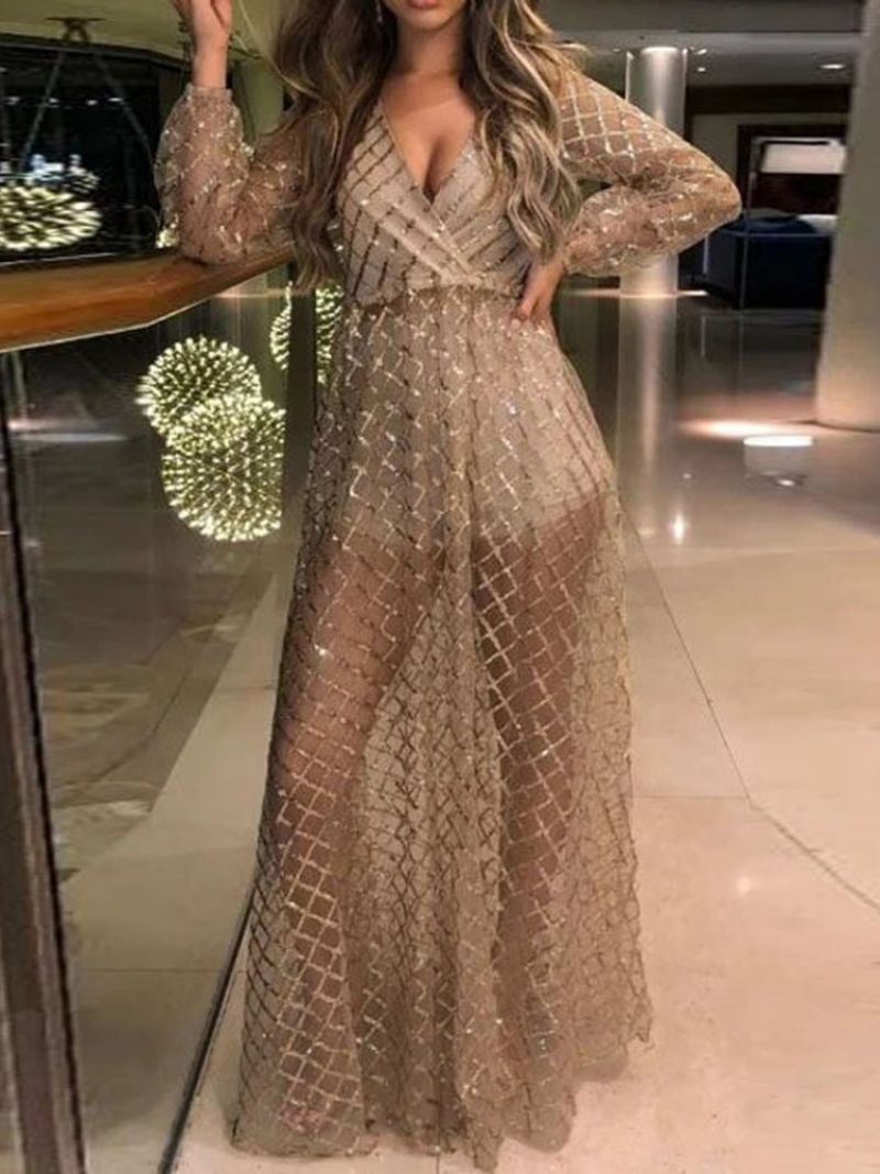 Pitkähihainen Verkkomekko Lattian Pituinen Yksinkertainen Villamekko