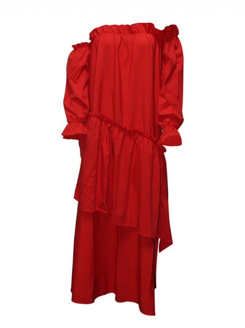 Pohkeen Puoliväliin Ulottuva Pitkähihainen Olkapäältä Poissuljettu Pusero Tavallinen Naisten Mekko
