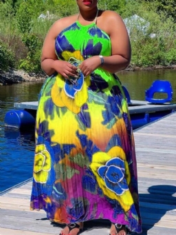 Polven Yläpuolella Patchwork Neliönmuotoinen Kaula-Aukko Rento Suuren Koon Mekko