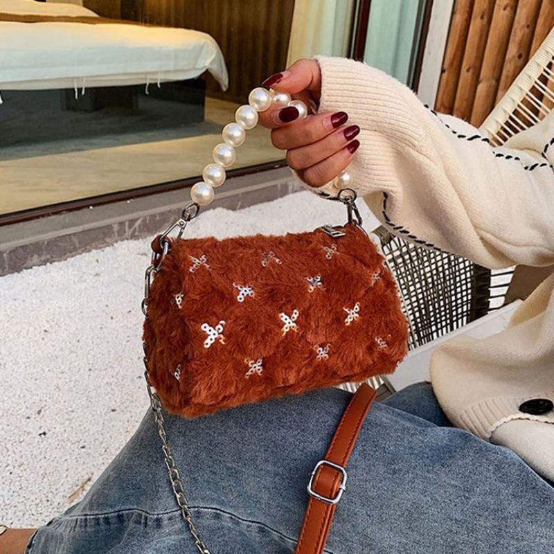 Pu-Ketjuiset Pyöreät Talviset Crossbody-Laukut