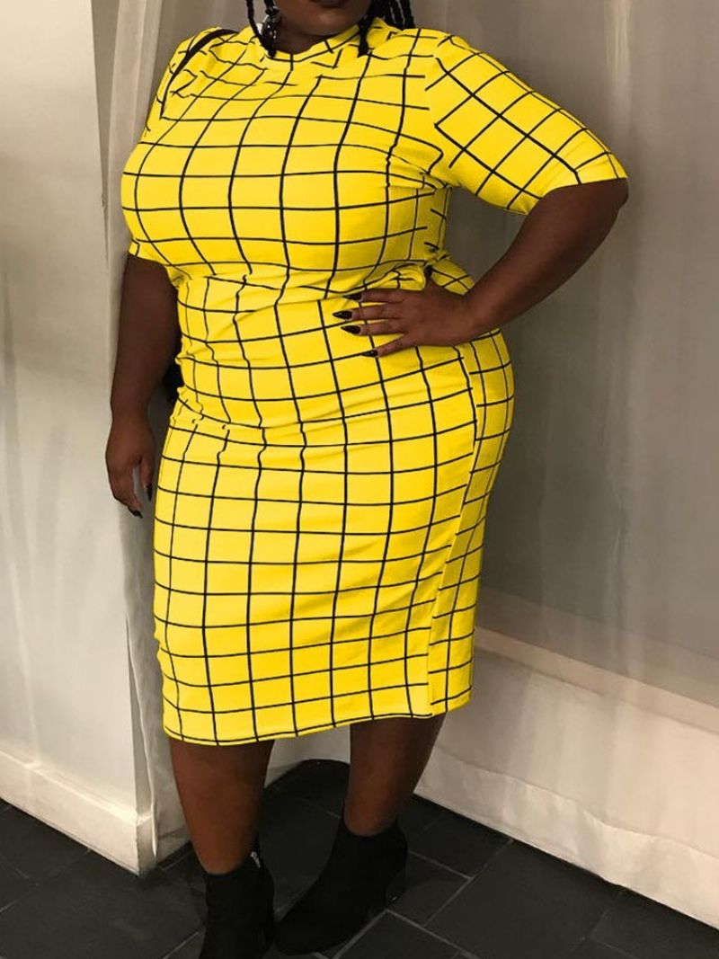 Puolihihainen Patchwork Jalusta Kaulus Bodycon Mekko Plus Koko