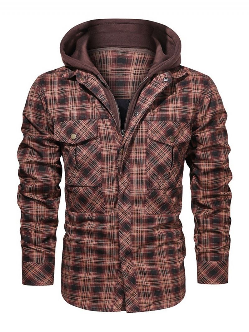 Ruudullinen Vetoketjullinen Hupullinen Muoti Vetoketjutakki