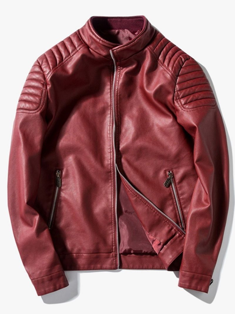 Stand Kaulus Tavallinen Vetoketjullinen Nahkatakki