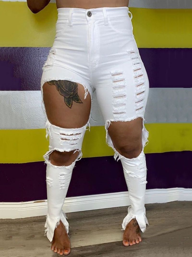 Tavalliset Bellbottoms Hole Skinny Mid Waist Farkut