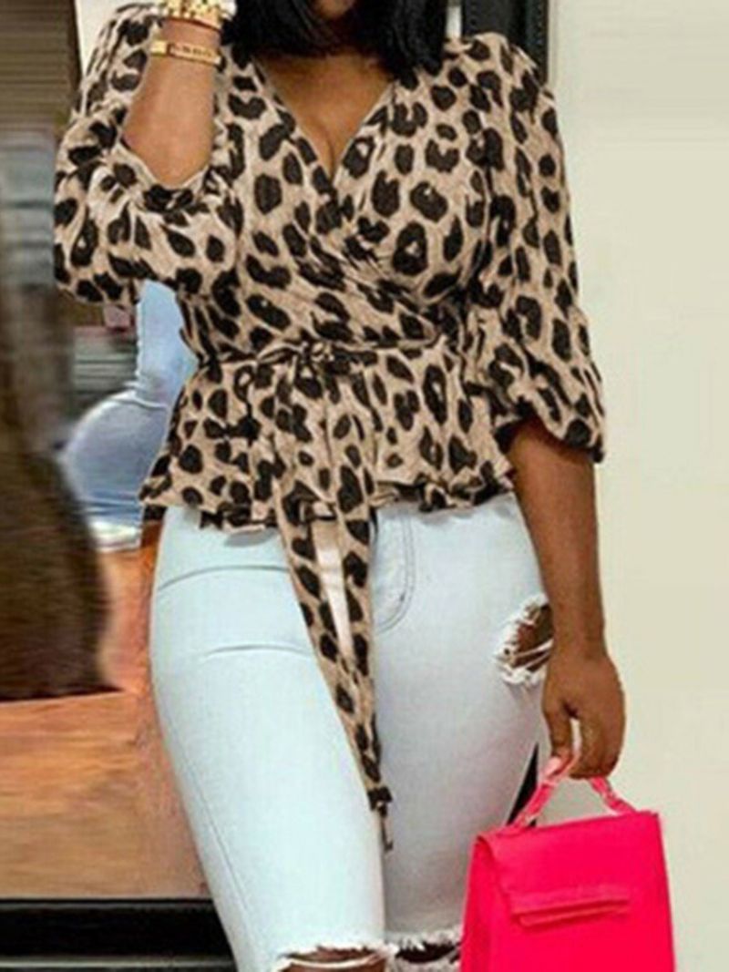 V-Kaulaprintti Tavallinen Kolmen Neljäsosan Hihainen Vakiopusero