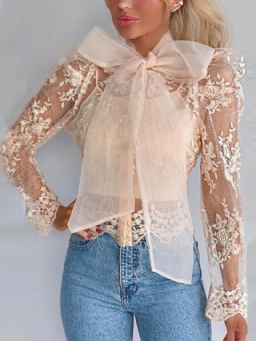 Tavallinen Läpinäkyvä Pitkähihainen Pitsipusero